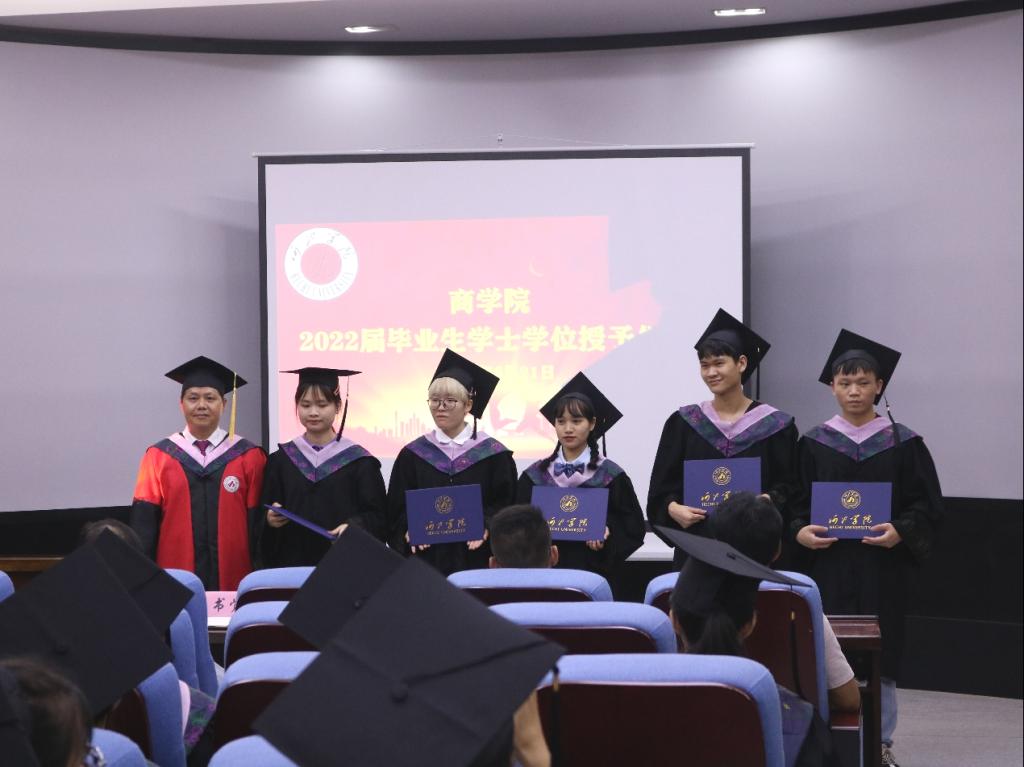 覃举东首先祝贺永利官网2022届毕业生顺利毕业,并向毕业生颁发学士学位证,寄语他们“心怀天下,追寻梦想”。蓝振榕提到,毕业生们要做一个“心中有梦,目中有人,接得地气,办得实事”的当代青年。韦书觉在总结中表达了他对毕业生的期许,愿各位同学在充满挑战的未来中,披荆斩棘,不负所望!